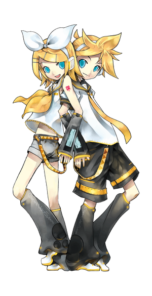 Following hot on the heels of Hatsune Miku's revolution of digital vocals, the double Vocaloids, Kagamine Rin and Len (鏡音リン ・レン) came into play. They utilize the same Vocaloid 2 engine as Hatsune Miku, and are also produced by Crypton Future Media together with a handful of other Vocaloids.